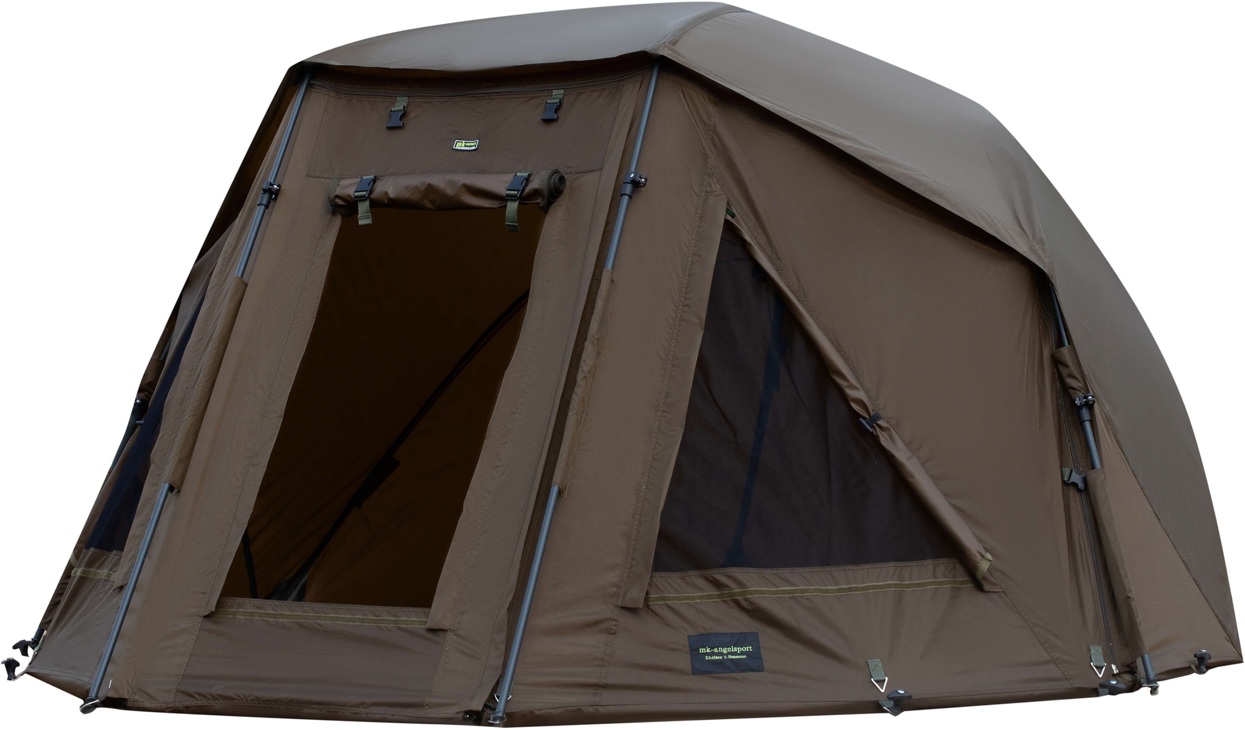 - Klettbandbefestigung zur Sicherung Ihrer Ruten an der Vorderseite des Bivvies