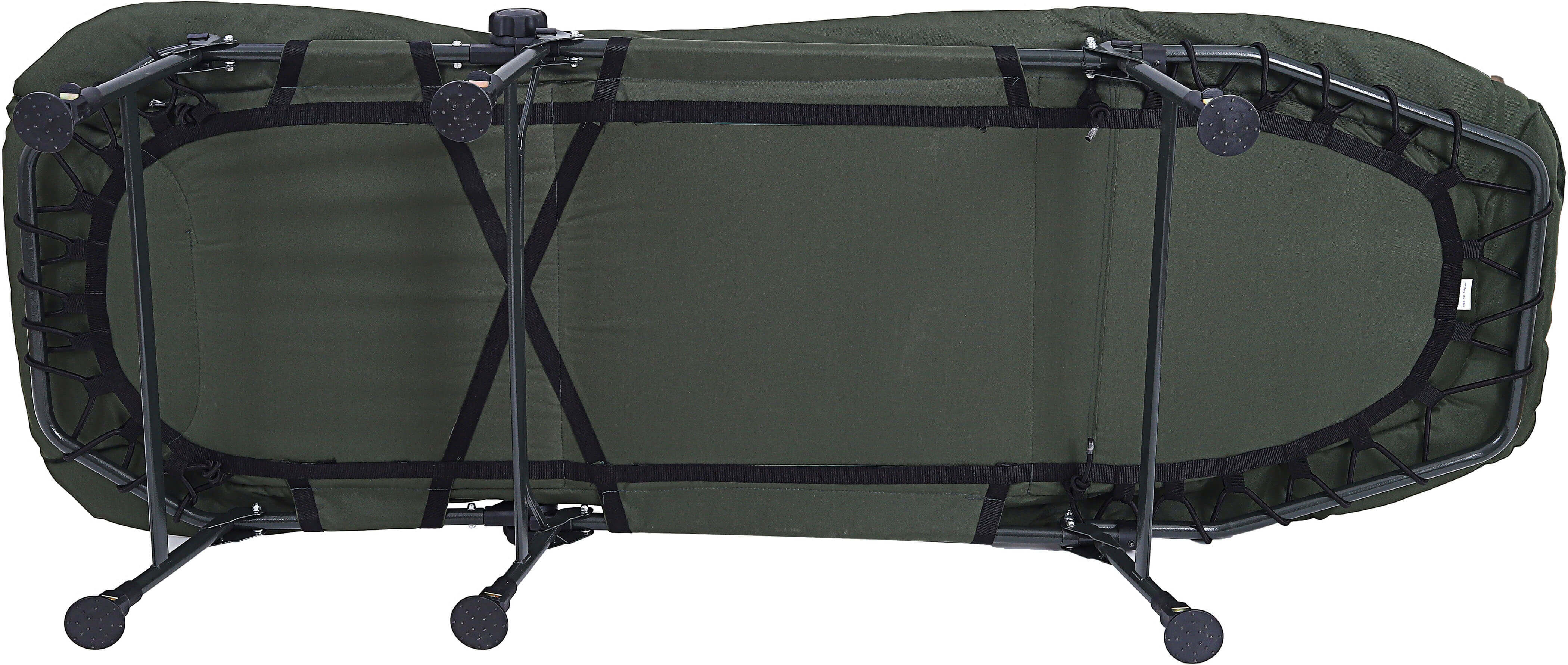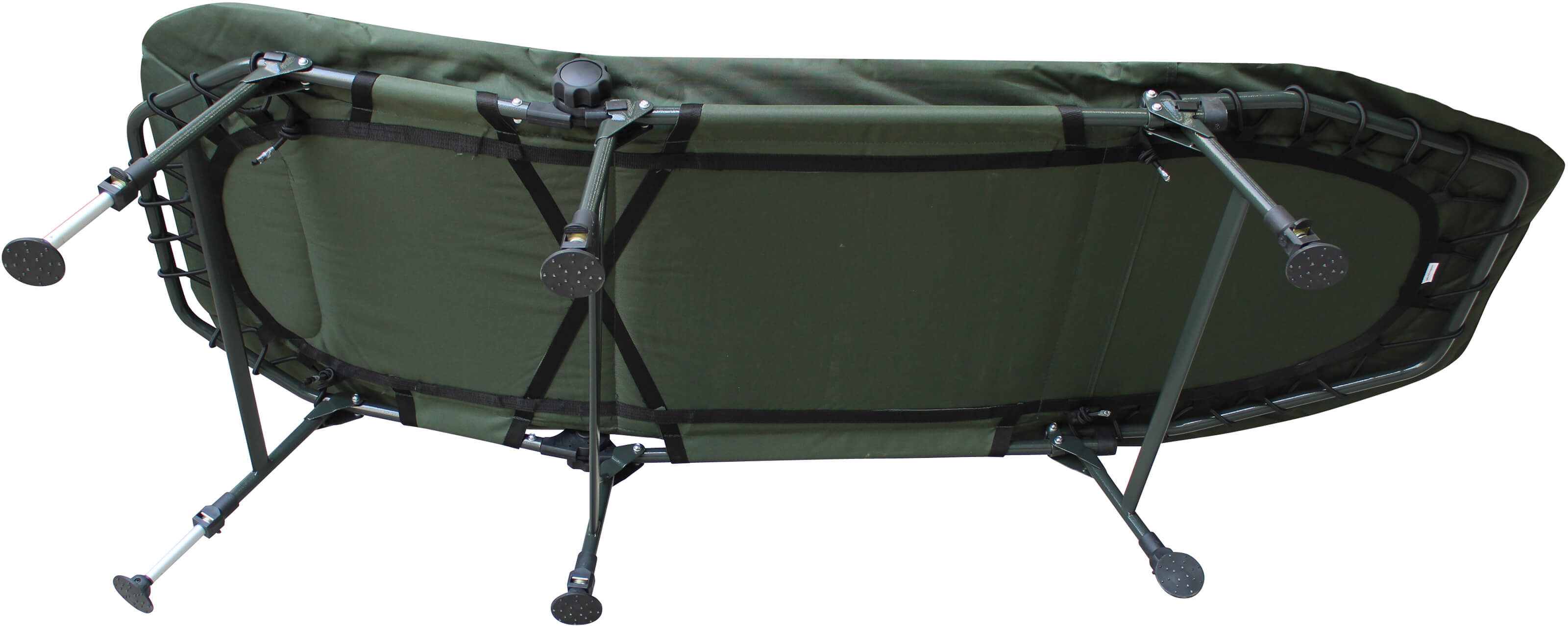 Die Füße sind mit beweglichen Schlammfüßen, den sogenannten Mudfeeds, ausgestattet. Aufgrund unseres bewährten Federplatten Systems ist diese Karpfenliege von 35 bis zu 49cm in der Höhe verstellbar. Somit bestimmen Sie als Angler ganz einfach Ihre gewünschte Liegenhöhe.