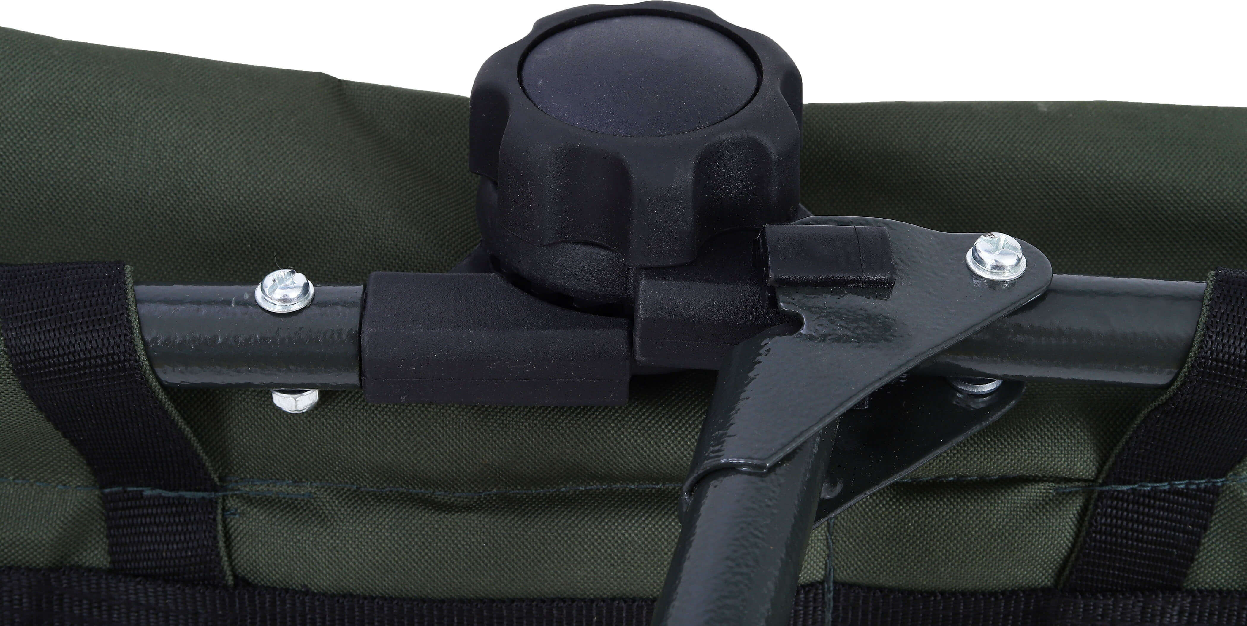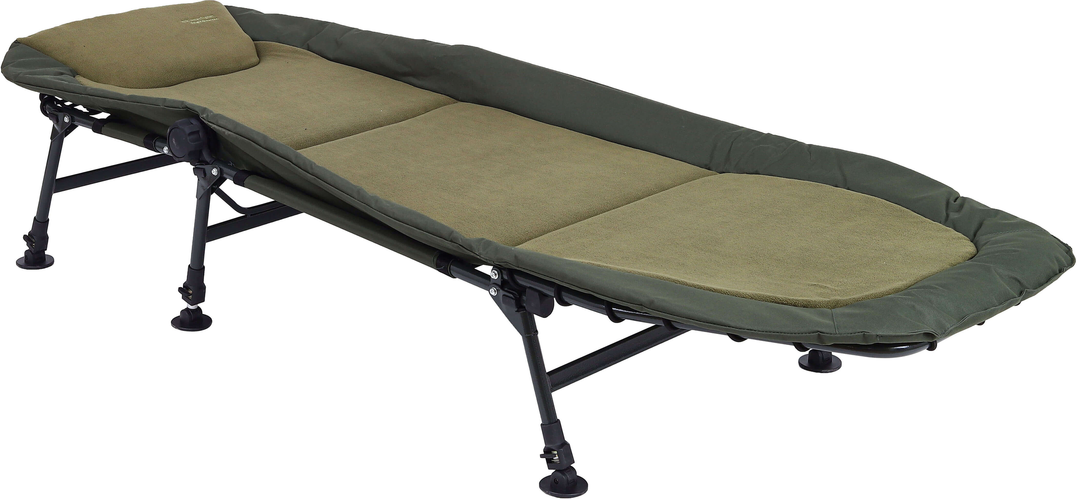 Die Karpfenliege ist, dank aufwendiger abgesteppter Thermopolsterung, absolut bequem und bietet einen hervorragenden Liegekomfort. Gerade bei längeren Sessions kann man sich auf diese Angelliege absolut verlassen. Dieser Bezug des Bedchairs wurde extra dick gewählt und zusätzlich an den Seitenbereichen verstärkt und gepolstert. Durch diesen Vorzug sind die beiden Gelenke der Karpfenliege optimal gepolstert. Ein wichtiger Vorteil für eine angenehme und tiefe Nachtruhe.