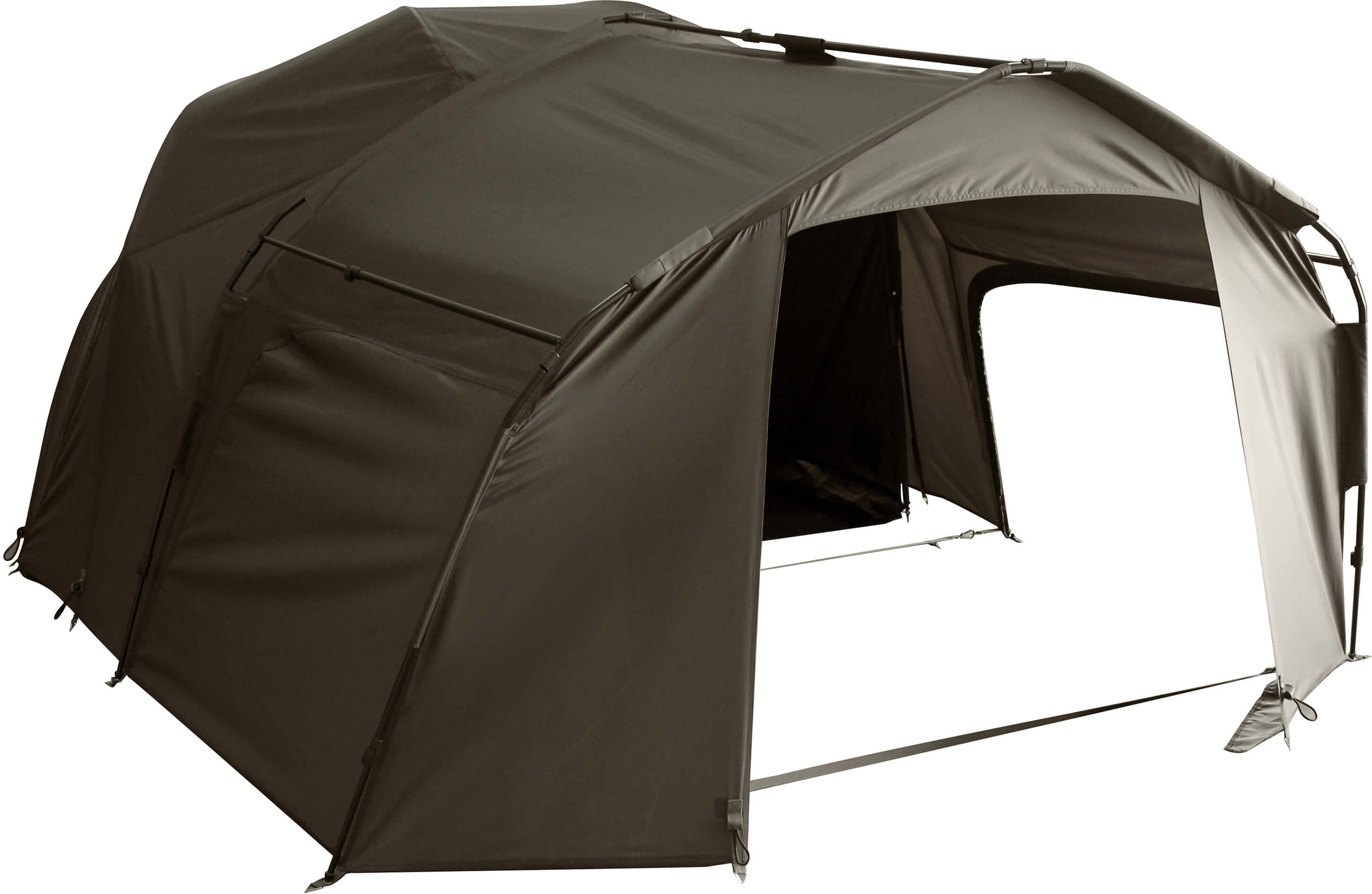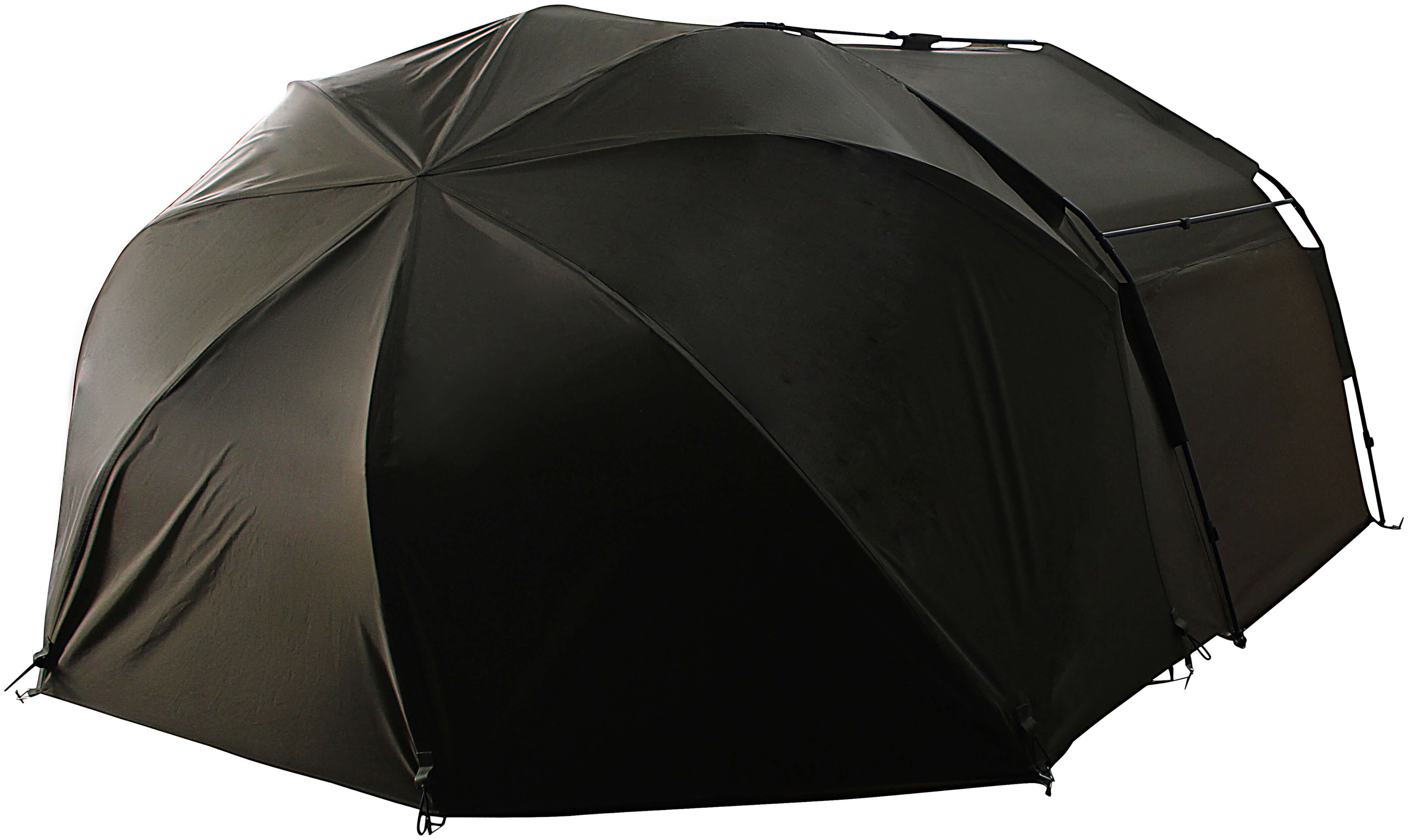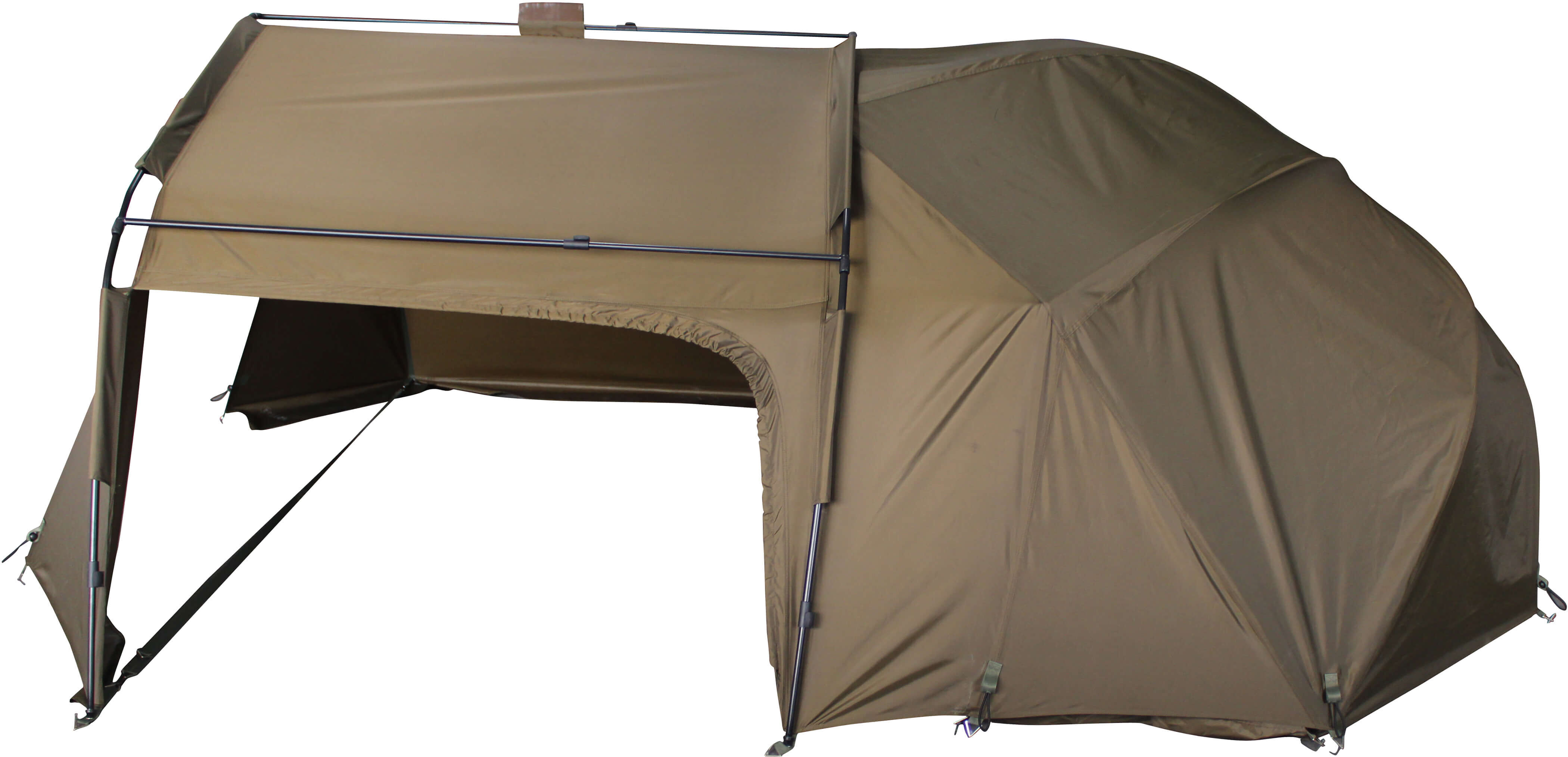 Zwei in einem. Wir haben für Euch ein Vorzelt und Skin zugleich entwickelt, um die gängigen 60´Brollys einfach mit mehr Stauraum auszurichten oder auch mal bei schlechtem Wetter im Trockenen zu chillen.