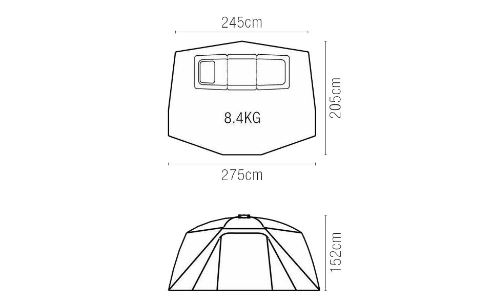 - Erweiterter Eingangsbereich, gebogener Regenschutz, Tension Bar und Wasserablaufrinne