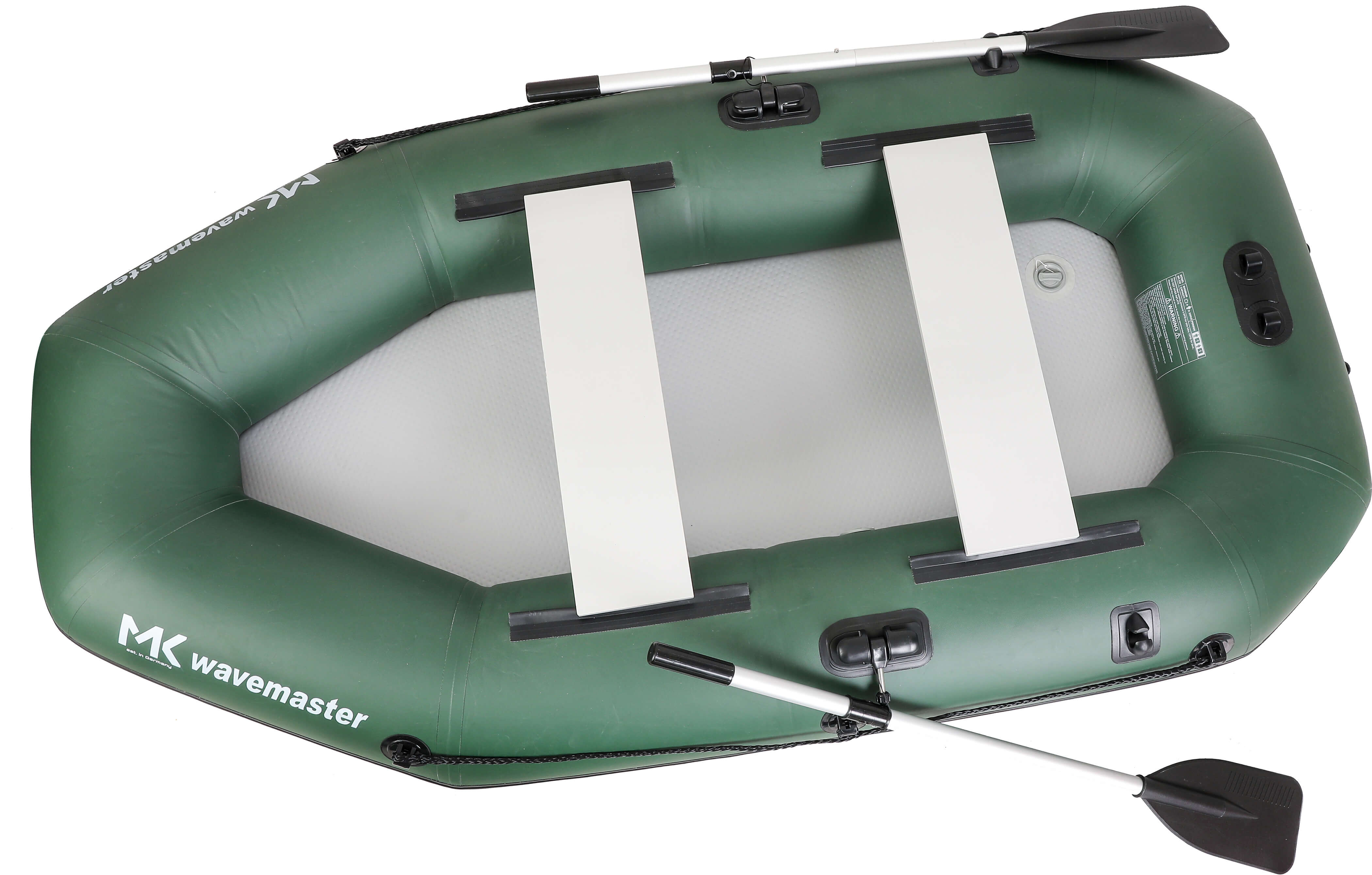 Im Lieferumfang sind neben einer Luftpumpe und einer praktischen Tragetasche auch 2 Aluminiumpaddel enthalten. Ein schneller und unkomplizierter Auf- und Abbau, sowie ein durchaus handlebares Eigengewicht von 14 kg machen das MK Wavemaster 235 zu einem unkomplizierten Begleiter - auch bei spontanen Angelausflügen.
