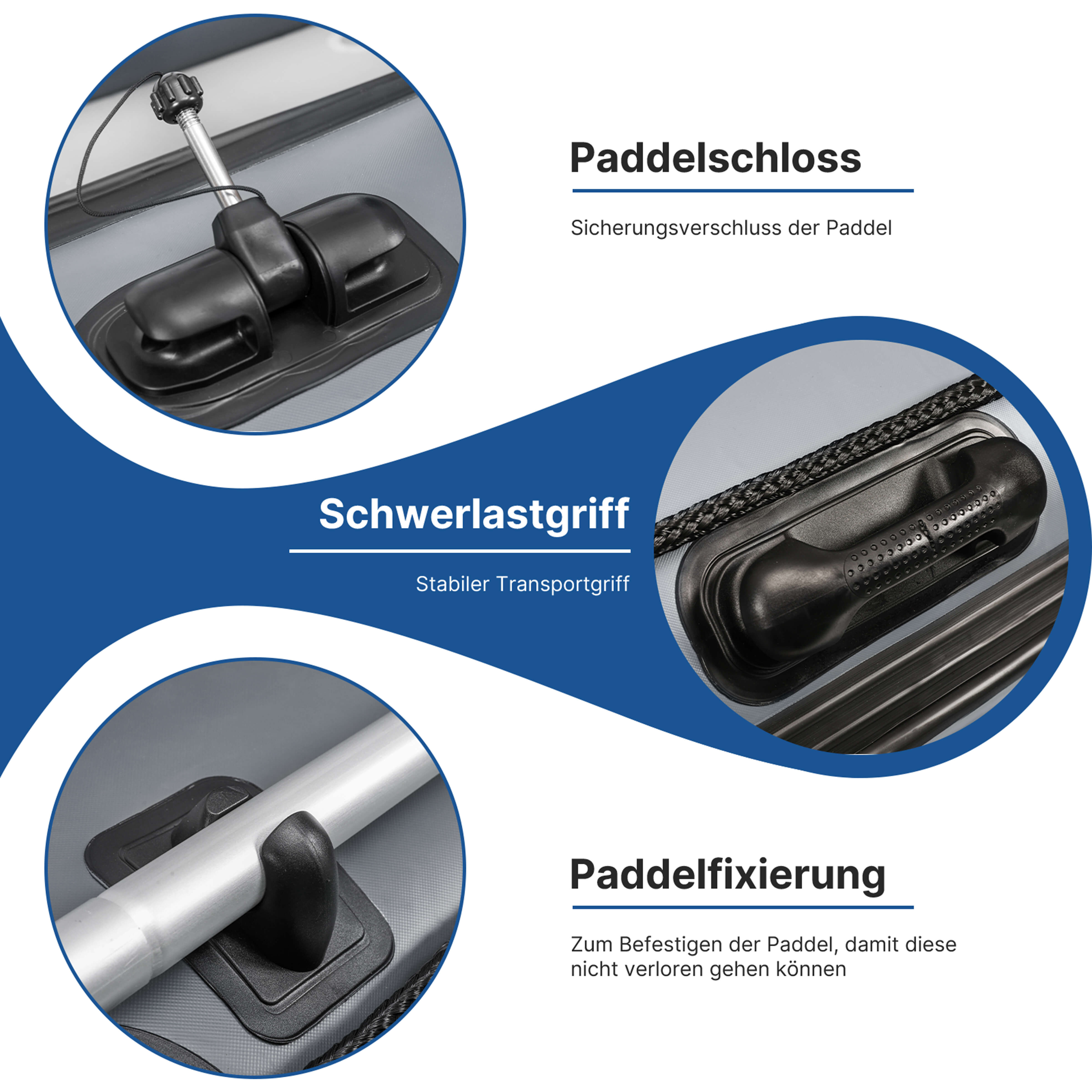 Mit integrierten aufblasbaren Kiel, gewährleistet ein Maximum an Stabilität auch bei höheren Wellengang. Mit Hilfe der Tragegriffe und dem seitlichen Trageseil kann das Boot sehr gut auch alleine gehandelt werden. Abgerundet durch das extradicke 0.9 mm Material haben Sie lange Freude an diesem hervorragendem Begleiter auf dem Wasser. Und das ganze zu diesem Mega Preis.